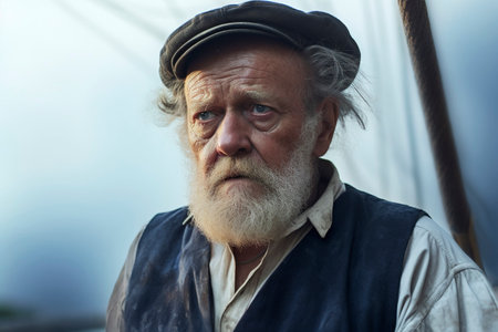 Portrait of an old man with a gray beard and a cap