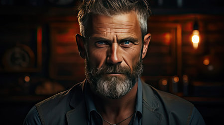 Portrait of a senior man with grey hair and beard in a vintage interior