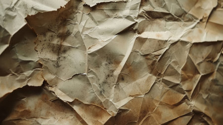 Detailed textured layers of a vintage inspired paper art background showing soft sepia tones, creases, and shadows for depth