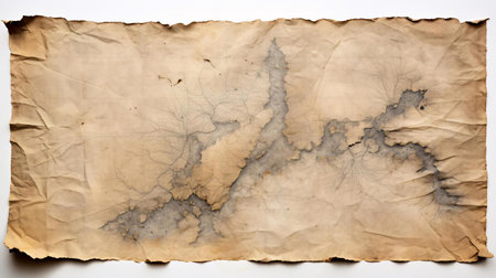 This image features an old worn paper sheet, isolated on a transparent background, showing its vintage textures and historical charm. Perfect for creative projects, art designs, and nostalgic themes.