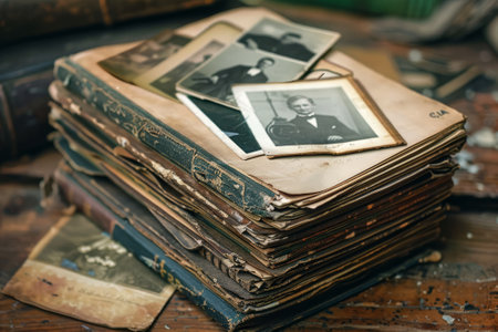 Crumpled and yellowed photographs capturing memories from a bygone era