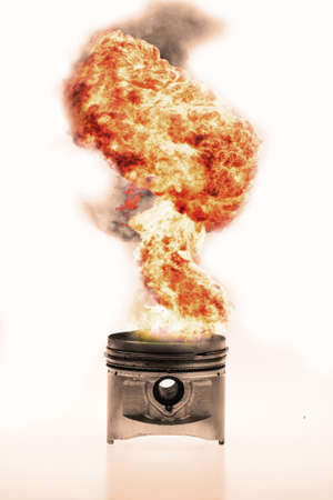 fuel burning on top of engine piston. Burning fire flame on engine piston.