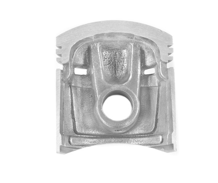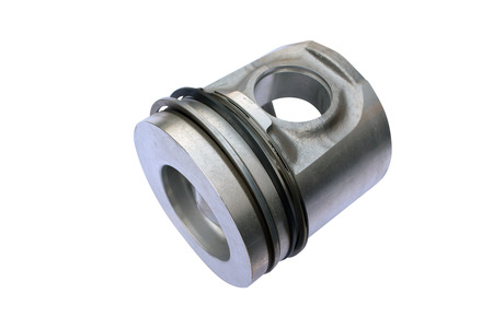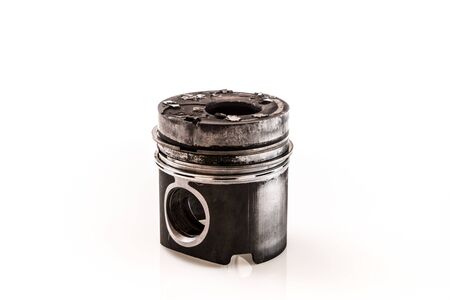 Close-up of spare new piston for a gasoline engine with on an isolated white background.