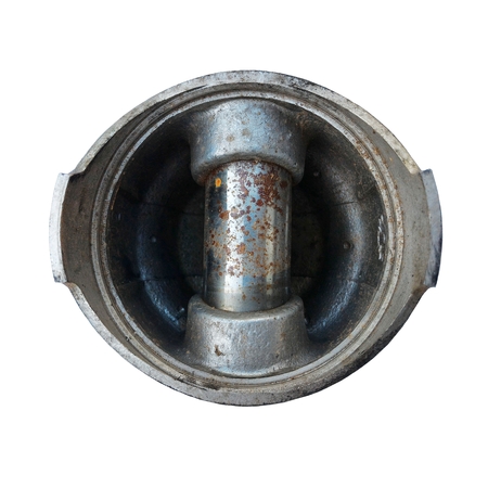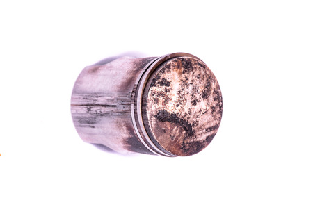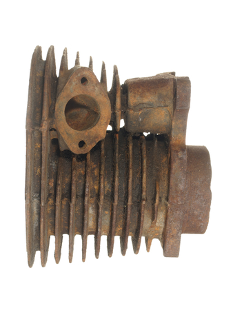 Old rusty cylinder from an old motorcycle engine isolated on a white background.