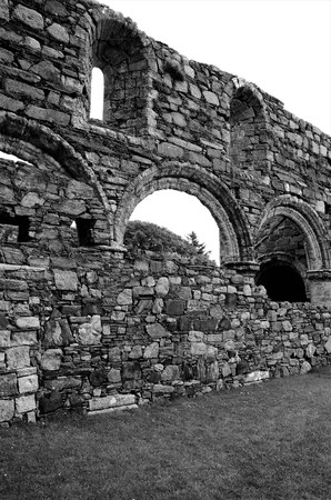 A view of the ruins of a medieval nunnery and convent building on the island of Iona