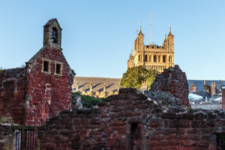 View of ancient ruins next to Canterbury Cathedral in Kent, England