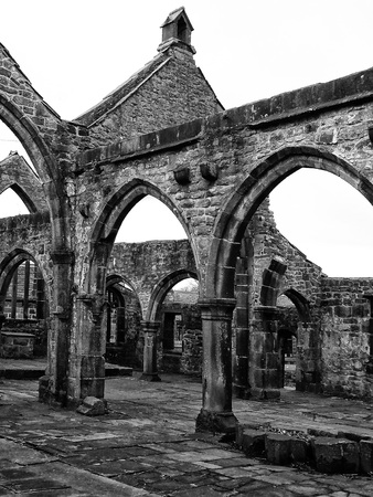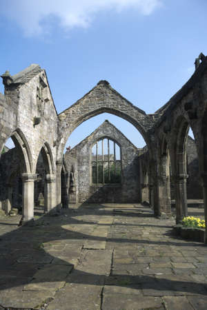Ruined medieval church with arches in Heptonstall West Yorkshire