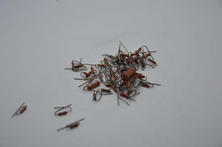 Used resistors with different values on a white background closeup