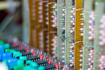 Electronic industry. Connection diagram of resistors in the control cabinet. Close-up.