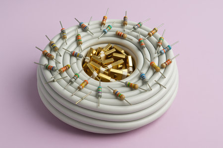 Radial Arrangement of Blue Electronic Resistors on White Background
