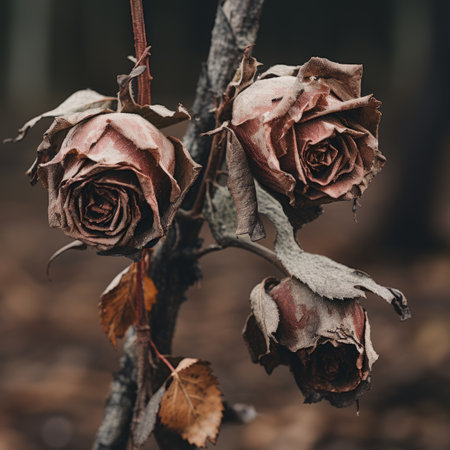 AI Generated. Dark Moody Bouquet of Withering Roses Closeup