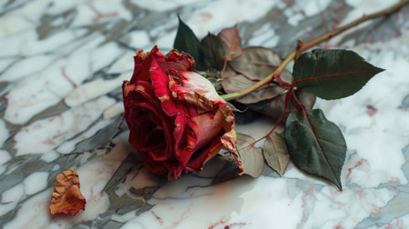 A wilted red rose against a blue backdrop, symbolizing love's decline. A stark depiction of relationship challenges. Suitable for posters, articles, and awareness campaigns.