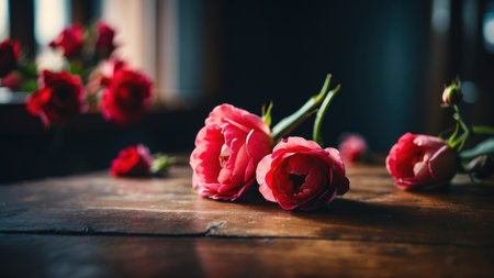 AI Generated. Dried Rose Nostalgia on Wooden Table - Memories of the Past