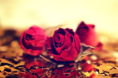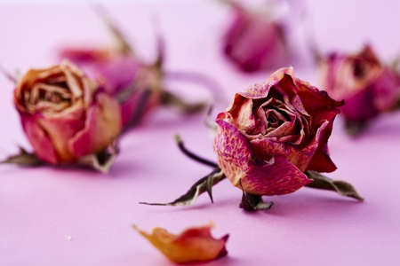 Close-up image for Valentine's Day of dry roses. Studio shot.