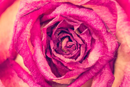 photo of a dry, withered pink rose, distinct petal texture, dry flowers