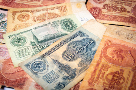 Vintage USSR ruble banknotes old currency intricate designs