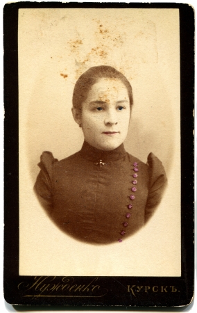 RUSSIA - CIRCA the end of 19 - early 20 century An antique photo shows woman, Lugansk, Russian Empire, now UkraineRussian text Umanskiy photographer , Lugansk