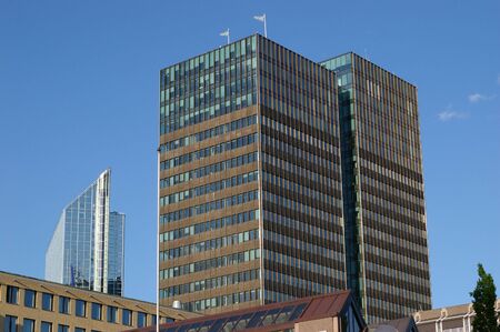 Modern office building bank in the evening