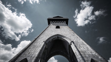 Stone tower of Kalemegdan Fortress in Belgrade under a clear blue sky