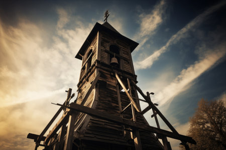 Old church tower with clock, abstract view - Romania Transylvania