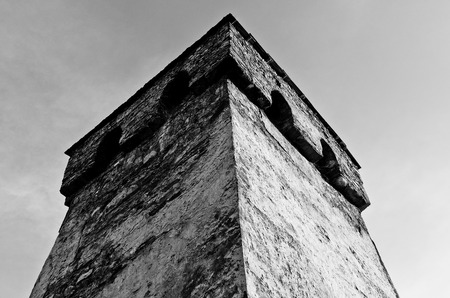 Vigilance structure of an abandoned jail on a cloudy day
