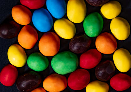 Multicolored candies on a black background close-up