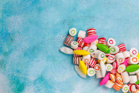 Different colorful sugar candies,top view