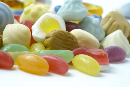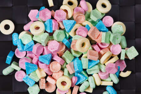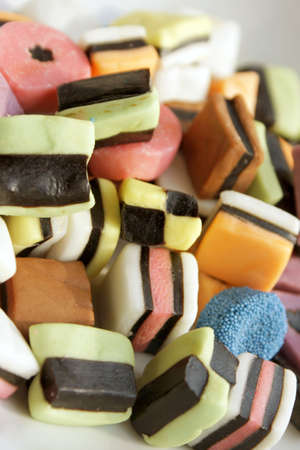 Close-up of some colored allsorts liquorice candies