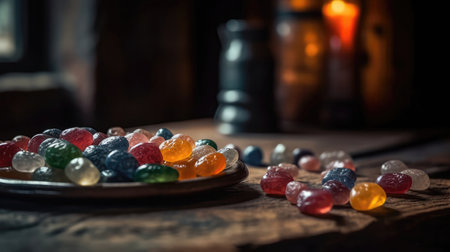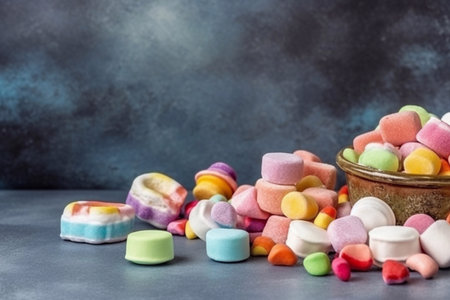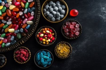AI Generated. Colorful Candy Stones on Dark Background with Copy Space Sweet Treat Confectionery Dessert