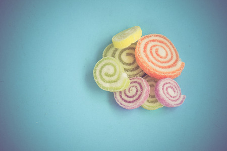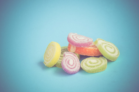 Colorful fruit-paste sweets with filter effect retro vintage style