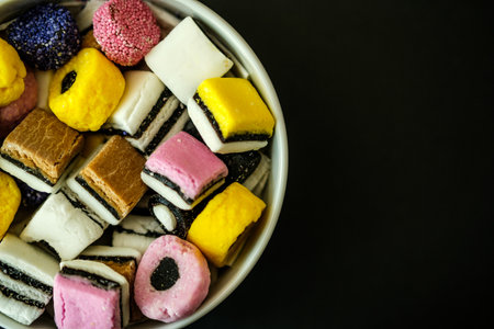 London UK, May 17 2025, A Bowl of Classic Liquorice Allsorts Sweets