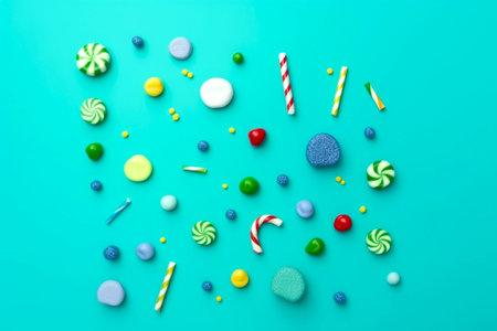 Still life of colorful candies. Flat lay
