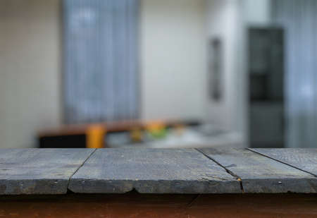 Empty wooden table and Coffee shop blur background with bokeh image.