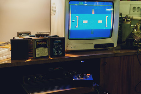 Tallinn, Estonia - 21.05.2022: LVLup! Video Game Museum - Atari Console