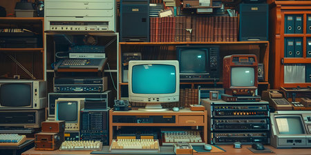 Vintage computers as relics from a bygone era, symbolizing the fascinating evolution of electronic devices.