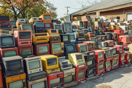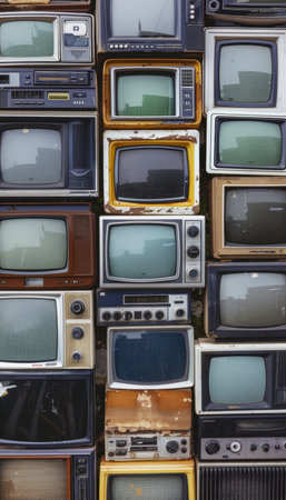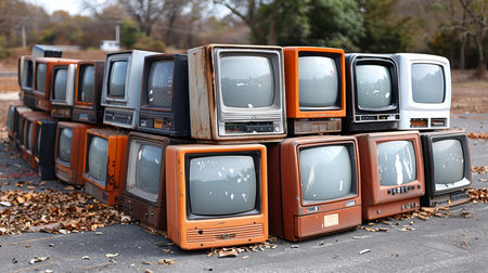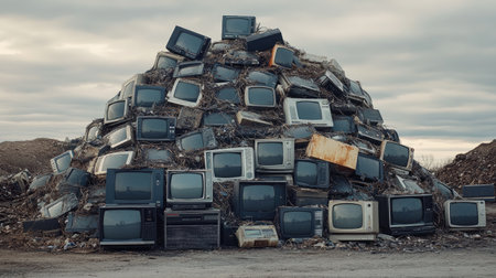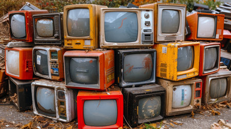 Pile of vintage televisions on an electronic waste mountain, symbolizing tech obsolescence