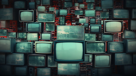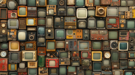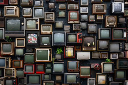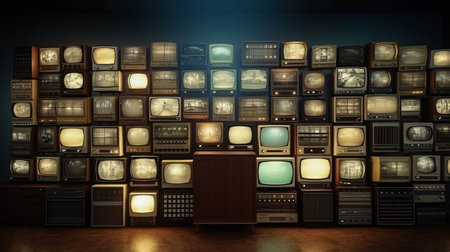 Wall of a lot of old TVs. Generative AI