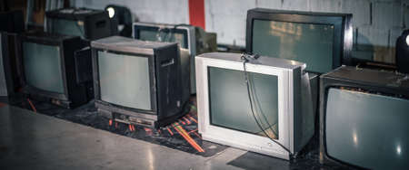 Obsolete television recycling e waste management concept with old electronics devices