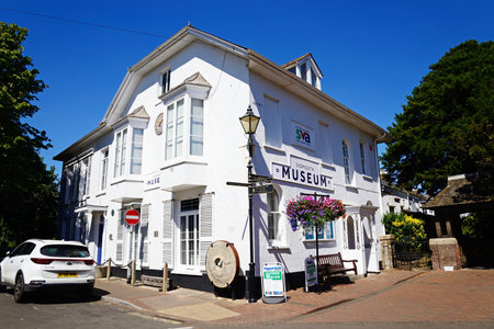 SIDMOUTH, UK - AUGUST 11, 2022 - View of the Sidmouth Museum along Church Street in the old town, Sidmouth, Devon, UK, Europe, August 11, 2022.