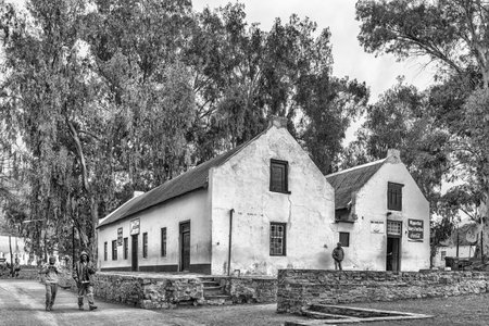 WUPPERTHAL, SOUTH AFRICA, AUGUST 27, 2018: A store in Wupperthal in the Cederberg Mountains of the Western Cape Province. People are visible. Monochrome