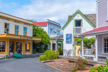 NELSON, NEW ZEALAND, FEBRUARY 5, 2020: Historial buildings at Founders Heritage Park at Nelson, New Zealand