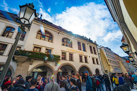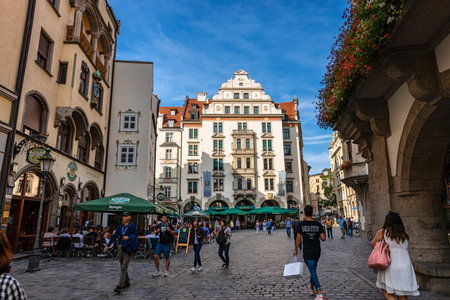 Munich, Germany - February 5: old town and Platzl Square with Restaurants and famous hofbrauhaus on February 5, 2019 in munich, germany