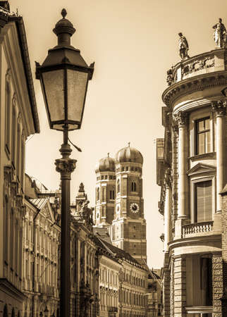 Traditional street view of old buildings in Munich, Bavaria, Germany