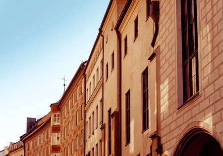 Munich, Germany - May 02, 2017: The fasade of old residential house of Munich in Bavaria
