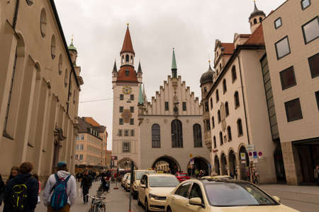 View of the Old Town Hall building at Marienplatz. Munich, Germany