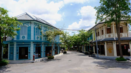 June 3 2021, Nonthaburi, Thailand : Landscape of vintage building at Chomchei Cafe The Memory Gallery, famous attraction in Thailand.