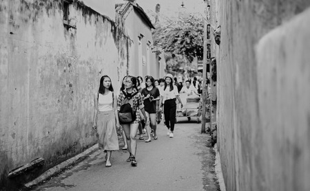 HOI AN, VIETNAM - NOVEMBER 24, 2016: Tourists visit Hoi An ancient town. Hoi An is a popular tourist destination of Asia. Hoi An is recognized as a World Heritage Site by UNESCO.
