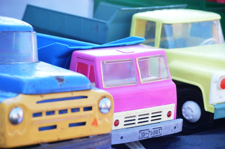 AMSTERDAM - AUGUST 2011: Old tin toy cars sold on a flea market in Amsterdam, Netherlands, Holland.