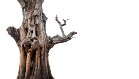 The Creepy Old Tree Trunk of Cleafless on side position provides copy space for text. background concept isolated white
