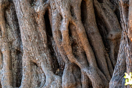 Trunk of an old olive tree Natural design element. Texture of a trunk an old olive tree. A bark of olive tree. Olive wooden background copy space for products or text.